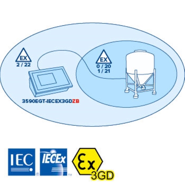 Weight indicator for Ex areas classified as hazardous. ATEX/IECEx marking: