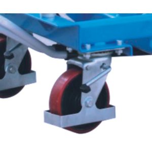 The poly steel wheels are designed to provide exceptional maneuverability in tight areas. This lift table uses a standard handle with a lift release lever and the foot pedal powers the hydraulic lift.