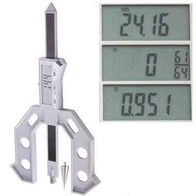 Set the height with greater accuracy! This 3-in-1 gauge combines the functions of three tools: a depth gauge, height gauge, and thickness gauge. Features super large LCD display and housed in a heavy-duty polycarbonate frame which allows it to stand freely. The frame allows the tool to be set at 70, 80 or 90 degrees as well as horizontally for accurate measuring. The measuring range is 0-150mm/0-6″, with a maximum depth of 3.10″ and a slot depth of 2.90″. Easily switches readings from inches to metric to fractions at a touch. Two hardened steel measuring anvils (flat and point) are included. Supplied with a 3V CR2032 battery.