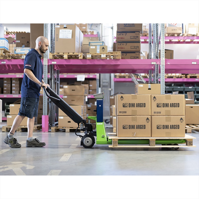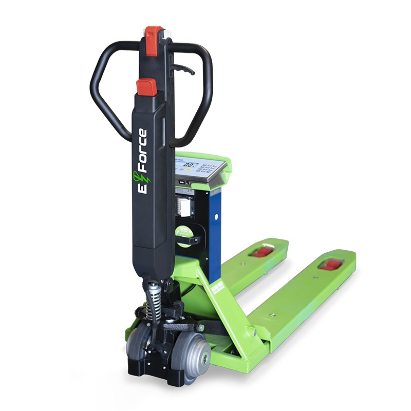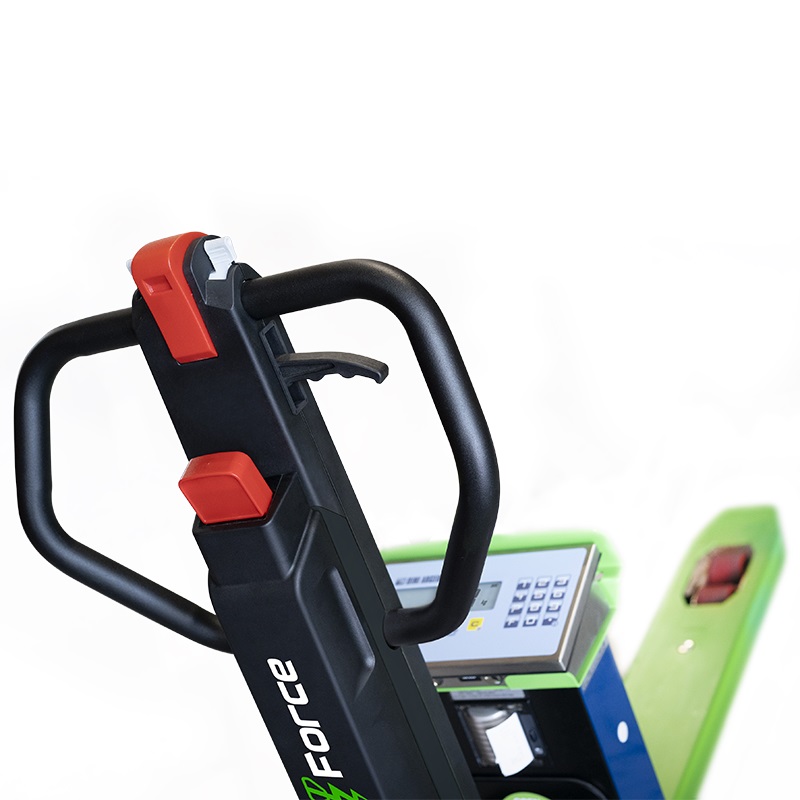 Innovative pallet truck scale with electric traction tiller. The TPW “E-FORCE” combines the benefits of electric pallet trucks with the precision of a Dini Argeo hand pallet truck scale.