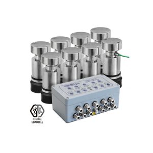 Kit for weighbridges made up of 8 RCPTD series IP68 stainless steel digital load cells, complete with galvanized steel oscillating resting joints and 10 input junction box (available for 3590E TOUCH SCREEN indicator).