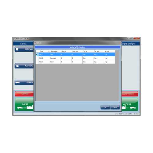 Software for a PC which allows to completely manage a weighbridge system, combinable to the DFW, DGT and 3590 series’ weight indicators. Besides the complete management of the connected scale, the programme offers a simple and intuitive operator interface, databases for the storage of the customer, material, and vehicle data, management of the totals and programmable printouts.